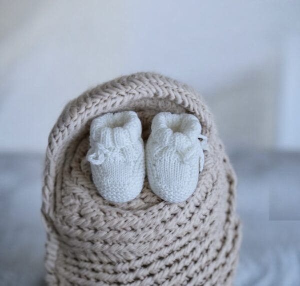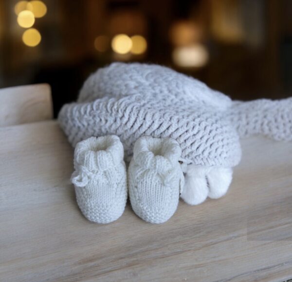 Offrez à votre bébé une bulle de douceur avec cette paire de chausson en laine de coton bio, tricotée à la main avec amour.