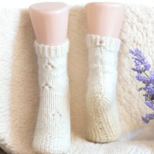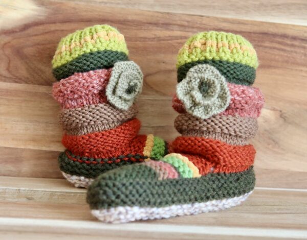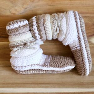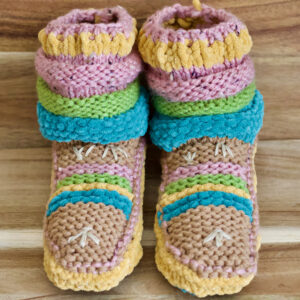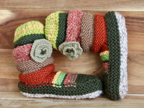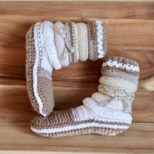Une bulle de douceur à votre pied 100 % laine Tricoté à la main, une création unique de Corine T design.