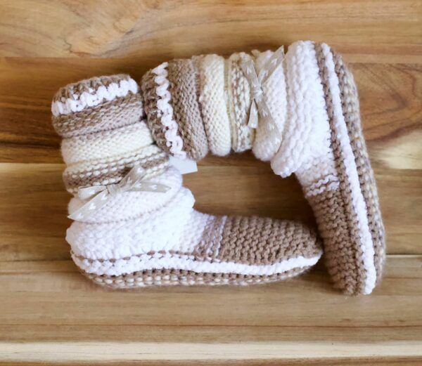 Offrez à vos pieds un cocon de chaleur avec ces chaussons tricotés main, alliant confort, charme et savoir-faire artisanal. Un style cosy et chaleureux pour les moments de détente.
