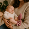 dans le cocon d’un monde encore à découvrir. Offrez un présent aussi tendre que symbolique avec les chaussons « Doux Sommeil », confectionnés à la main en France avec amour et minutie. Chaque paire est une création unique, pensée comme une ode à la naissance et à la délicatesse des tout-petits.