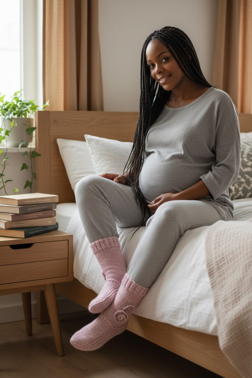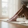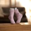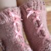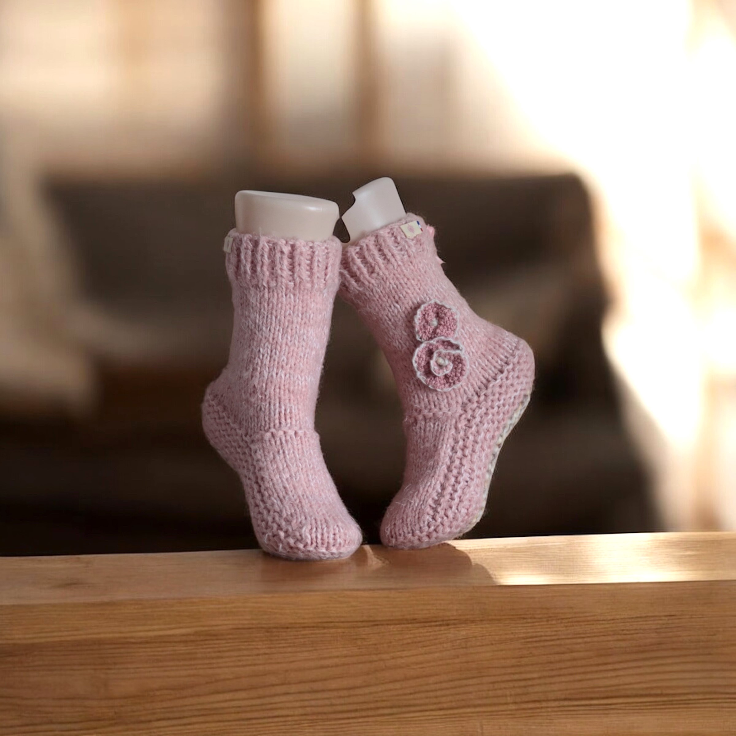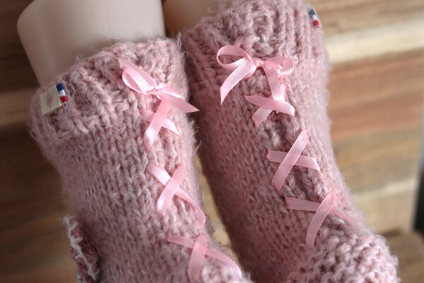 « Une douceur rose comme un murmure, tricotée pour envelopper les pieds de tendresse et le cœur de chaleur. »