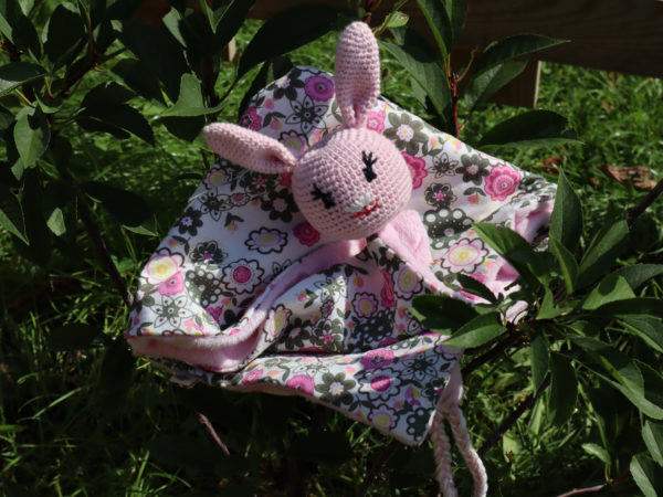 Un doudou lapin en tissus et en laine de coton biologique ! L’objet transitionnel incontournable qui aidera bébé pendant votre présence ou votre absence.