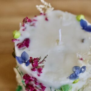 Véritable composition florale figée dans la cire